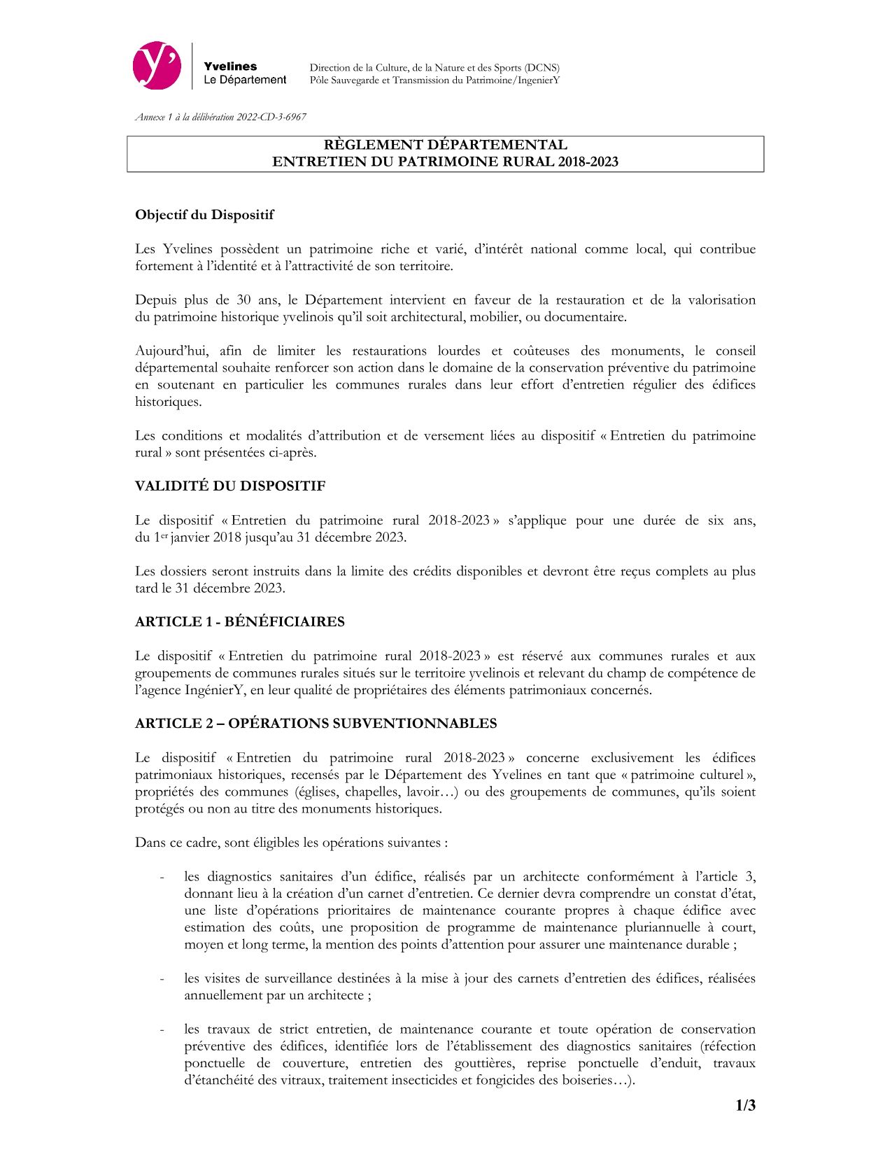 Le détail du dispositif complémentaire pour la conservation préventive du patrimoine rural est disponible sur le portail Yvelines - Hauts-de-Seine .