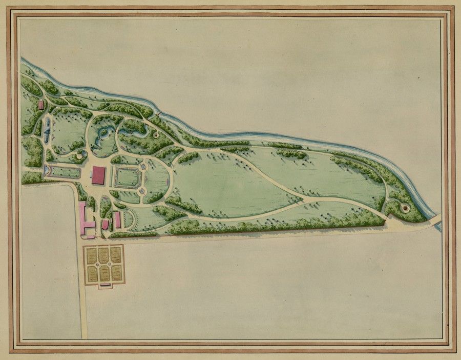 Parc de San Pancrazio [autre état]. Plan légendé aquarellé attribué à Édouard André, s.d.
