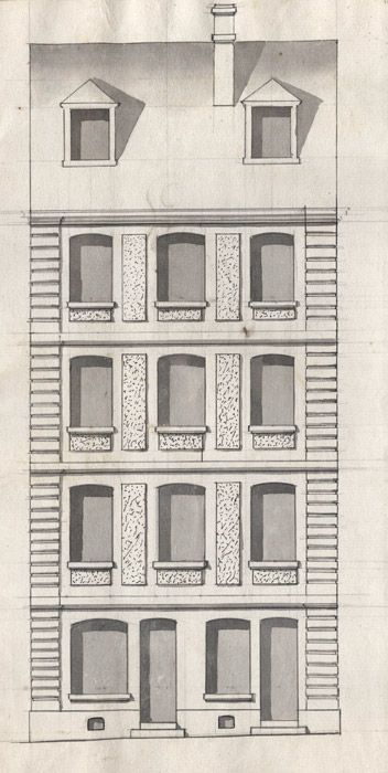 Etude Versailles Savouré, élévation d'une maison jointe à un devis de construction. 1752.