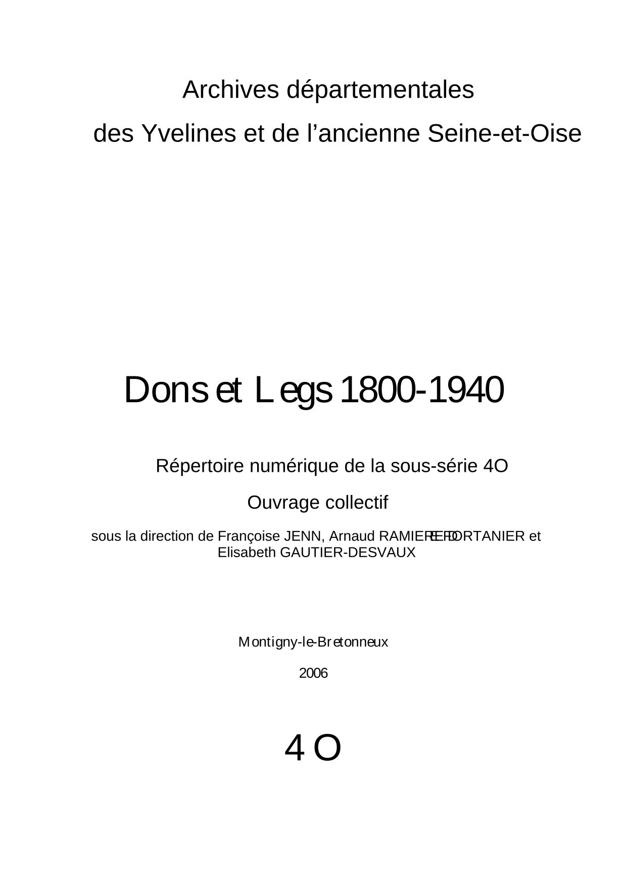 La série O des Archives départementales des Yvelines se subdivise en 4 sous-séries :